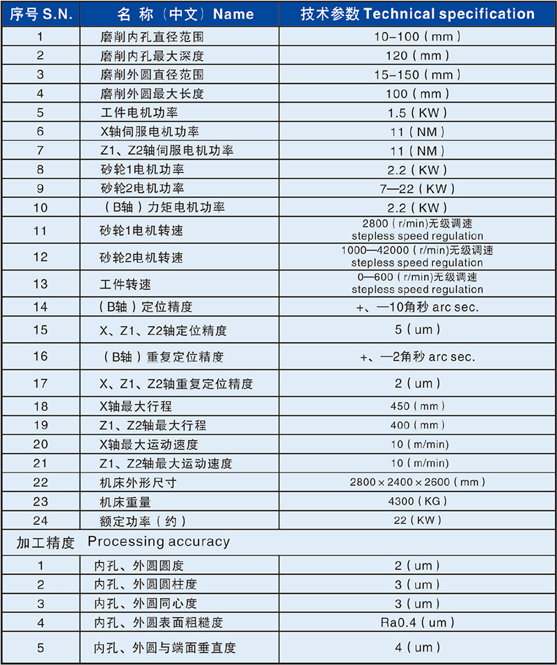 MKF2110+B轴型多功能数控磨床主要技术参数表